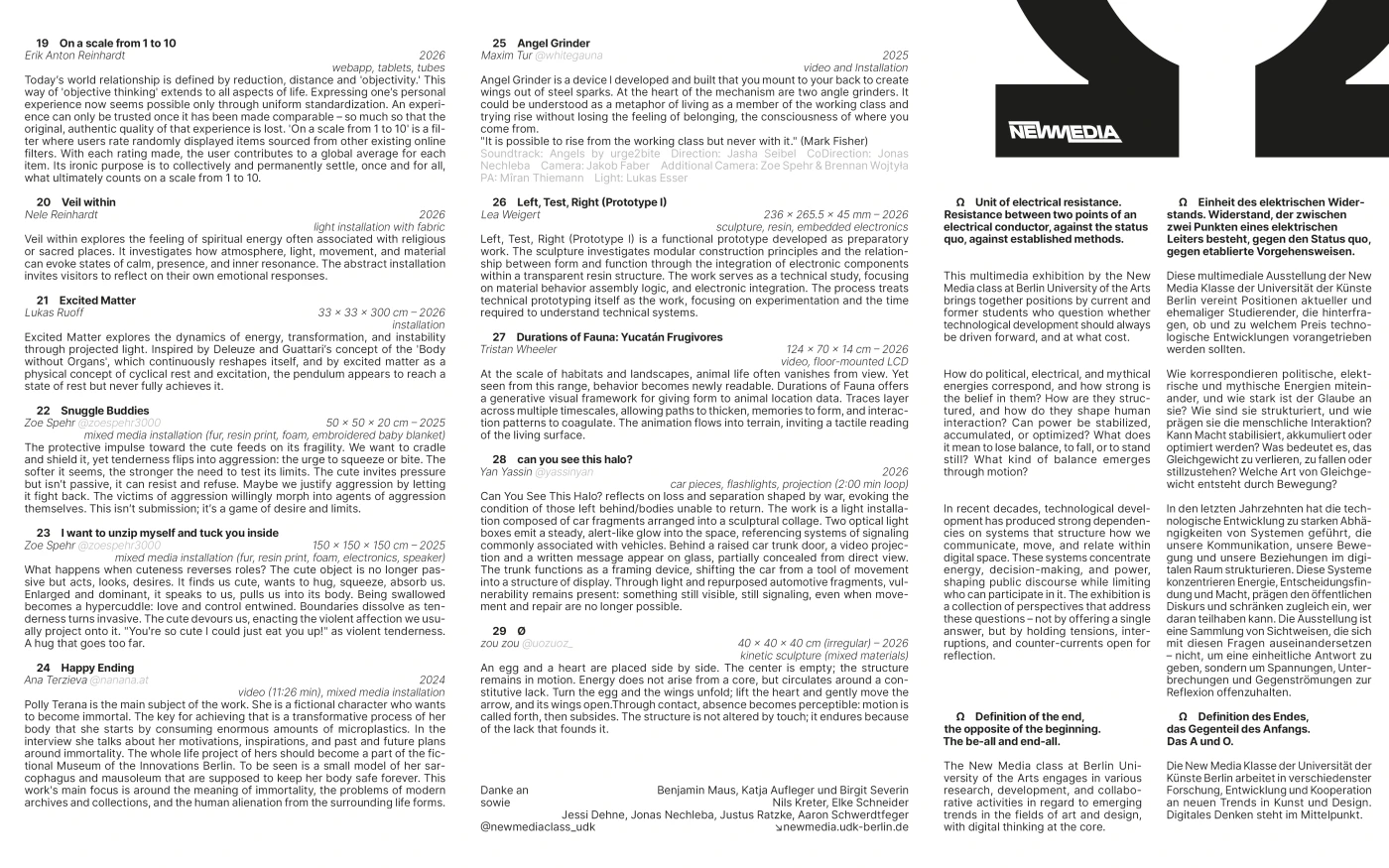 The New Media class at Berlin University of the Arts engages in various research, development, and collaborative activities in regard to emerging trends in the fields of art and design, with digital thinking at the core.