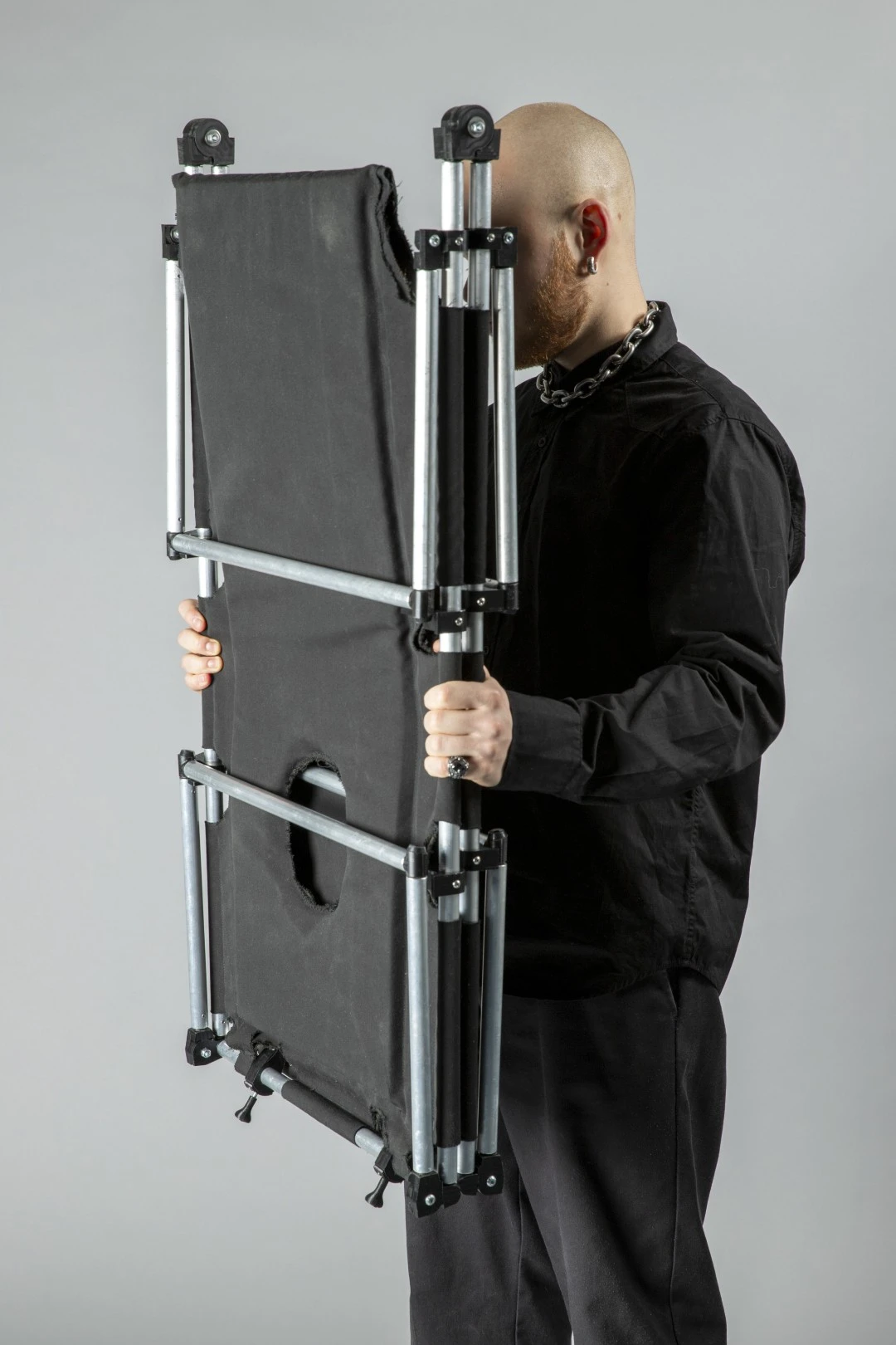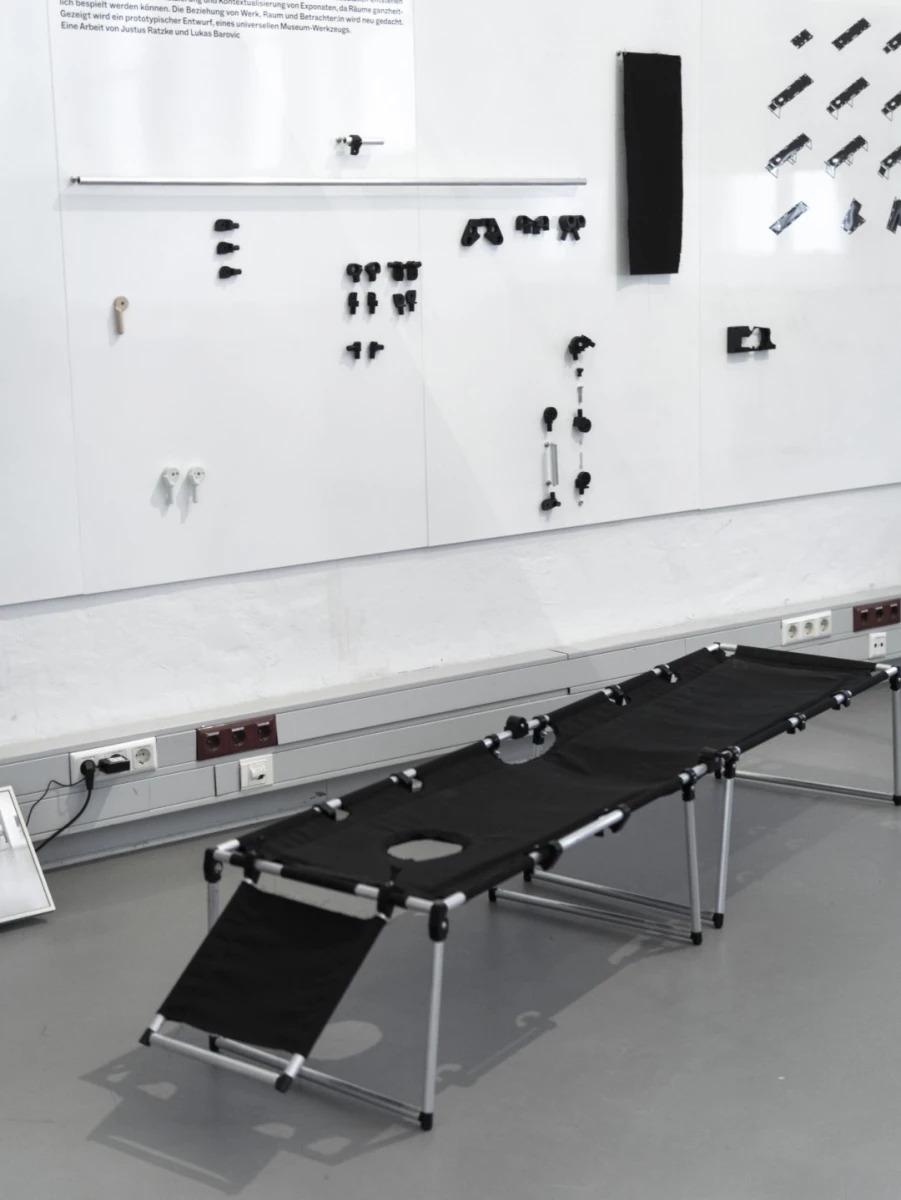 A portable, unobtrusive and – if possible – comfortable object gives visitors the freedom to adopt new and unusual perspectives in terms of viewing time, angle, distance and height. In addition, the designers are given more freedom in the placement of the exhibits, as the rooms can be used more extensively. Furthermore, unplanned perspectives allow for an individual recontextualization of the exhibition locations, pieces and viewers, thereby rethinking the work-space-viewer hierarchy. The work is intended as a prototypical design for a museum tool that is as universal as possible.